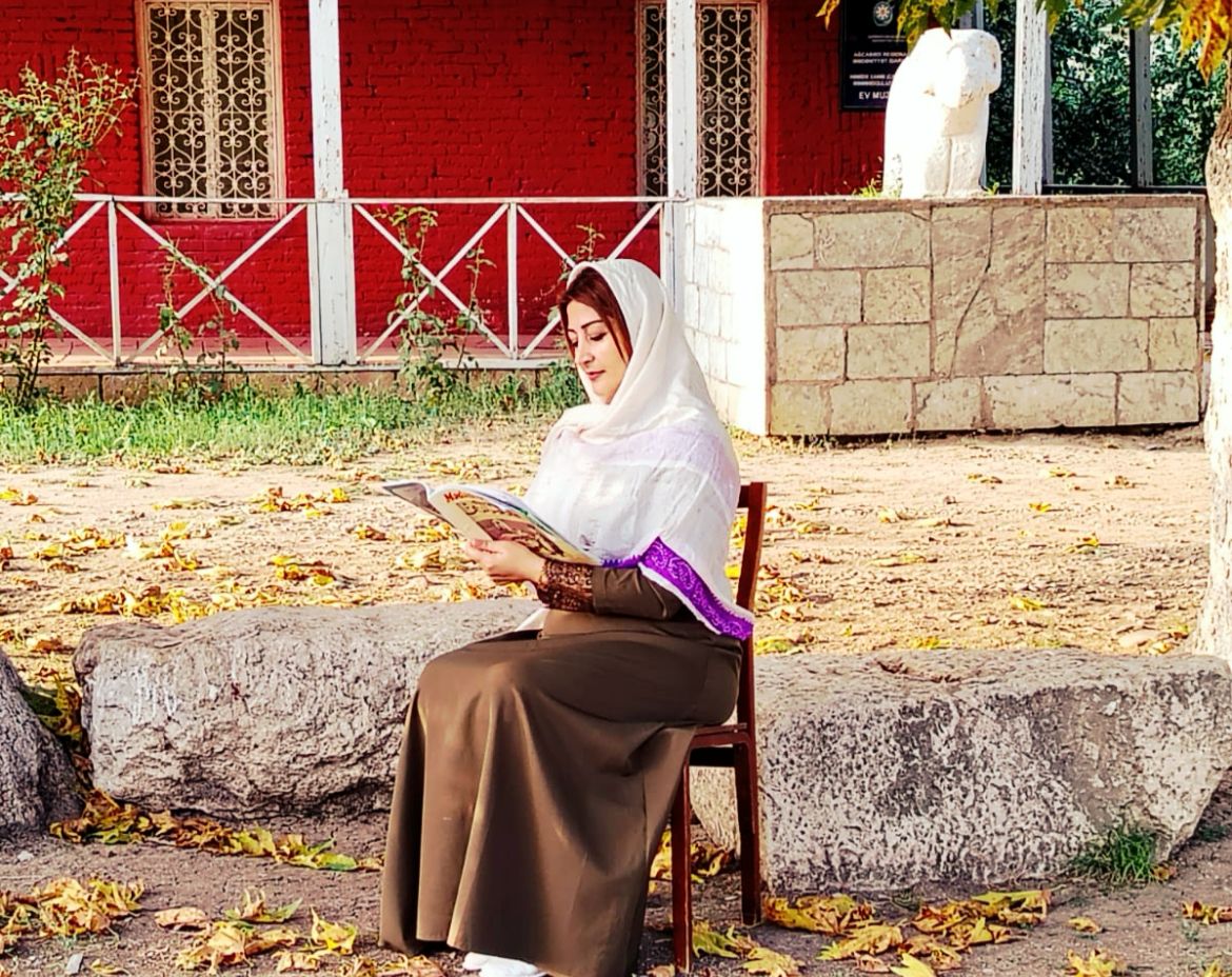 Artıq bütün eksponatlarla tanış olduqdan sonra planlaşdırdığım çəkilişə başlayıram. Həmidə xanım haqqında hazırlayacağımız verilişdə həm jurnalist olaraq, həm də Həmidə xanım obrazında iştirak etməli idim. Bir gün əvvəldən bütün dost-tanışa, necə deyərlər, hay salıb ağ kəlağayı istəmişdim ki, bu obrazı yaradanda istifadə edim. Çünki fotolarda Həmidə xanımın ağ rəngli, kənarları isə bənövşəyi naxışlı kəlağayıda olduğunu görmüşdüm. Dostlar da sağ olsunlar, onların sayəsində tez bir zamanda istədiyimi tapdım. Çəkilişdə də elə bu baş örtüyündən istifadə olundu. Amma sən demə, muzeydə Həmidə xanımın öz kəlağayısı da nümayiş edilirmiş. Çox köhnəlib süzülsə də, kənarlarının naxışı solsa da, onu ehtiyatla başıma örtürəm. Veriliş üçün olmasa da, özüm üçün bəzi çəkilişləri məhz bu kəlağayı ilə edirəm. Yumşaq, zərif kəlağayı üzümə toxunduqca ürəyim titrəyir. Elə bilirəm, yanağımı həzincə sığallayan, boynuma toxunan kəlağayı deyil, Həmidə xanımın nəfəsidir, əlləridir. Dəhşətli dərəcədə isti havada qalın geyim və baş örtüyü gərək nəfəsimi kəsə idi. Amma bir neçə saatlıq bu nəcib xanımın obrazında olmaq o qədər xoş və məsuliyyətli idi ki, istini də, vaxtı da unutmuşdum. Mən həmin an Həmidə xanımı yaşayırdım. Onun evində idim, onun əşyalarına toxunurdum, onun kəlağayısını örtmüşdüm, onun nəfəsini hiss edirdim, onunla eyni ərazidə doğulub böyüdüyüm üçün qürur hiss keçirirdim...