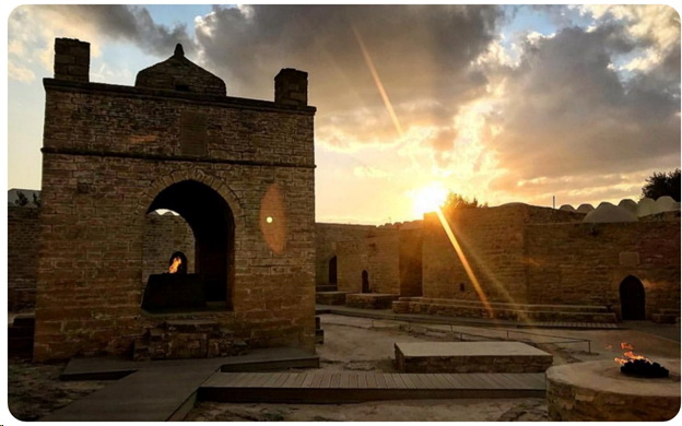 Atəşgah Bakıdan təxminən 30 kilometr aralıda yerləşir və müxtəlif dövrlərdə zərdüştilər, hinduistlər, siqhlər və parslar tərəfindən ibadət yeri kimi istifadə olunub. XVII–XVIII əsrlərdə təbii qaz çıxışlarının olduğu sönməz alovlar üzərində inşa edilən bu məbədin adı təsadüfi deyil: “Atəşgah” – “od evi”, “alov yeri” deməkdir.