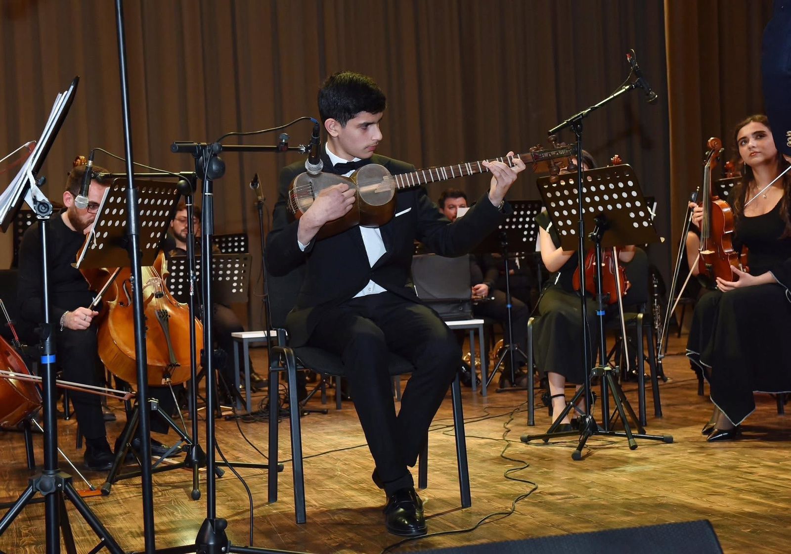 Konsertdə orkestr Xalq artisti Yalçın Adıgözəlovun dirijorluğu ilə Üzeyir Hacıbəylinin “Arazbarı”, Antonio Salyerinin “Venesiya yarmarkası” operasından uvertüra, Asəf Zeynallının “Muğamsayağı”, Vasif Adıgözəlovun “Prelüd №1” və “Lay-lay”, Qara Qarayevin “Don Kixot” simfonik qravürlərindən “Səyahət”, Hacı Xanməmmədovun “Kamança və orkestr üçün konsert”indən II hissə, Frits Kreyslerin “Çin tamburini”, Edvard Qriqin “Per Günt” süitasından “Solveyqin mahnısı”nı səsləndiridi.