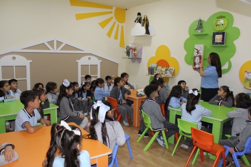 Nağıl saatının davamında şagirdlər üçün maraqlı cizgi filmi nümayiş olunmuş, uşaqların asudə vaxtının səmərəli təşkili təmin edilmişdir.