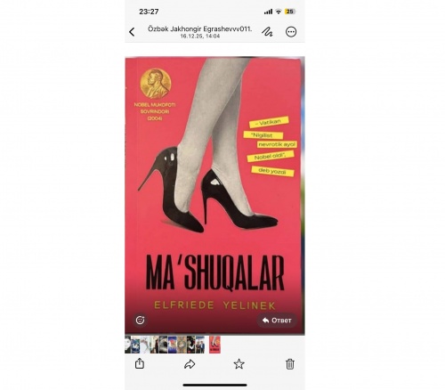 Müasir dünya ədəbiyyatının ən mürəkkəb, ən mübahisəli və ən cəsarətli yaradıcılarından biri — avstriyalı yazıçı, 2004-cü il Nobel mükafatı laureatı Elfride Yelinekin “Aşiqlər” (Die Liebhaberinnen) romanını oxuyub bitirdim.