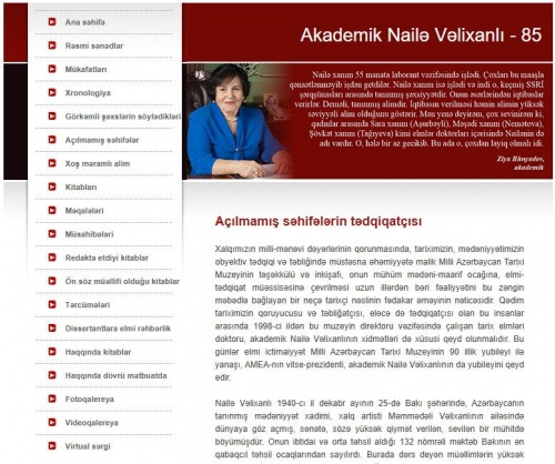 Ötən gün tarix üzrə elmlər doktoru, Azərbaycan Milli Tarix Muzeyinin direktoru, Əməkdar elm xadimi, akademik Nailə Vəlixanlının 85 illik yubileyi tamam oldu.