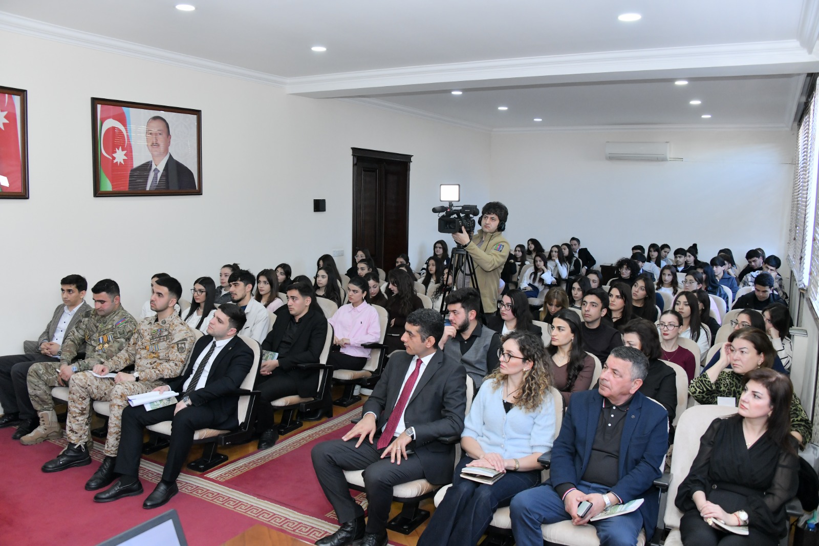 Universitetimizin qaziləri, Riyaziyyat fakültəsinin tələbəsi, peşəkar hərbçi kimi 44 günlük müharibədə müxtəlif rayonlarımızın azad edilməsində iştirak edərək Şuşa qələbəsinədək gedən Rahid Xəlilov, Təbiət elmləri fakültəsinin tələbəsi Hüsü Sarıyev çıxış ediblər.