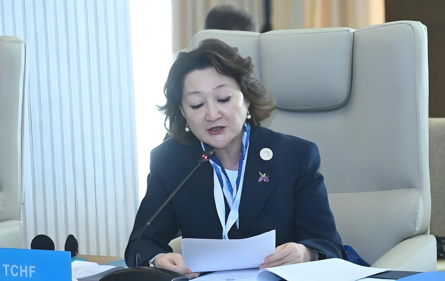 TÜRK MƏDƏNİYYƏTİ VƏ İRSİ FONDUNUN PREZİDENTİ AKTOTI RAİMKULOVA TOPLANTIDA ÇIXIŞ EDİB