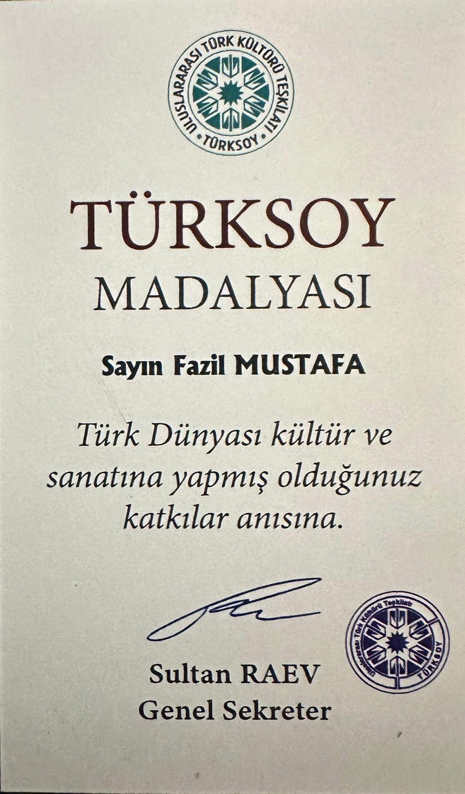 Türk dünyasının mədəni birliyini və ortaq dəyərlərini təmsil edən Beynəlxalq Türk Mədəniyyəti Təşkilatı – TÜRKSOY, millət vəkili, Milli Məclisin İctimai birliklər və dini qurumlar komitəsinin sədri Fazil Mustafanı “TÜRKSOY” medalı ilə təltif edib.