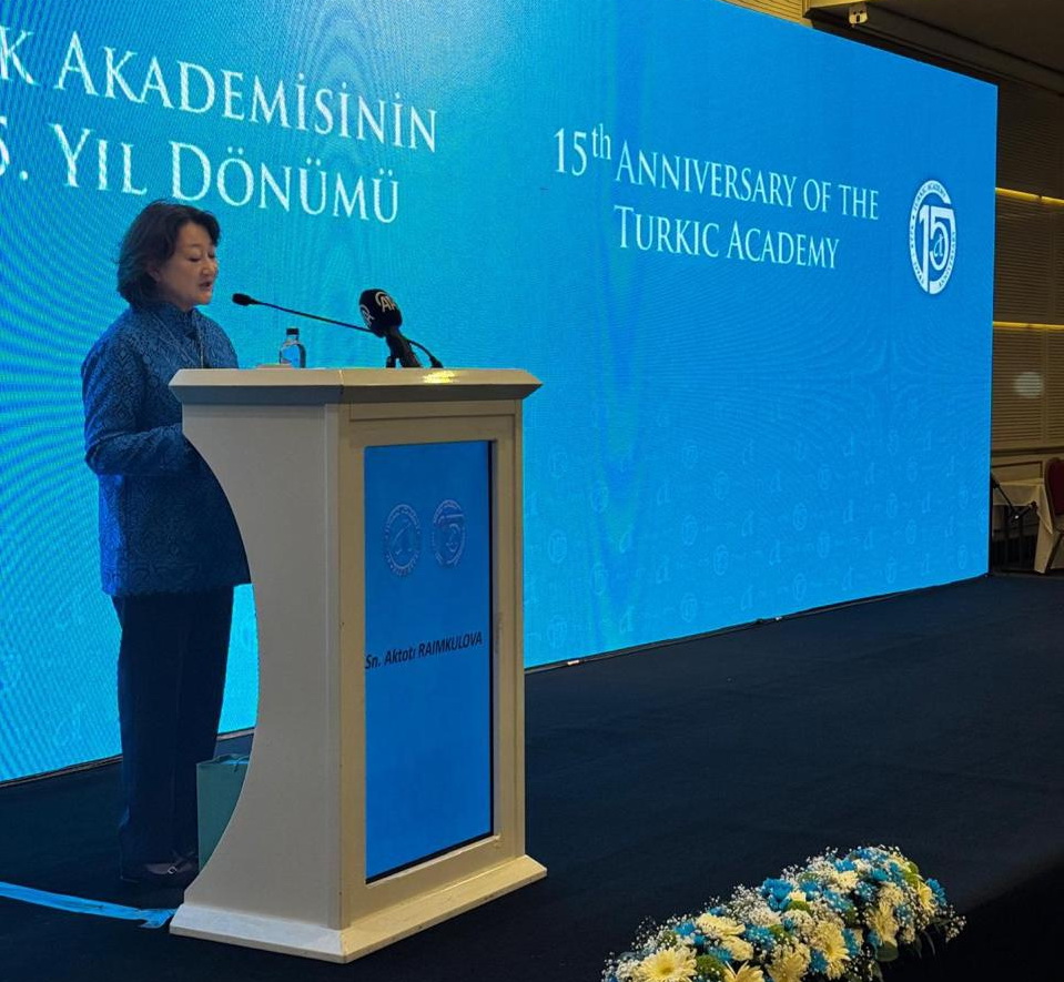 “Ədəbiyyat və incəsənət” portalına Fonddan verilən məlumata görə, tədbirdə çıxış edən Fondun prezidenti Aktotı xanım Raimkulova Türk Akademiyasının fəaliyyətini yüksək qiymətləndirərək qeyd edib ki, ötən 15 il ərzində Akademiya Türk dünyasının tarixi, dili, mədəniyyəti və mənəvi irsinin araşdırılmasını prioritetə çevirərək, bu sahədə aparıcı elmi mərkəzlərdən birinə çevrilmişdir.