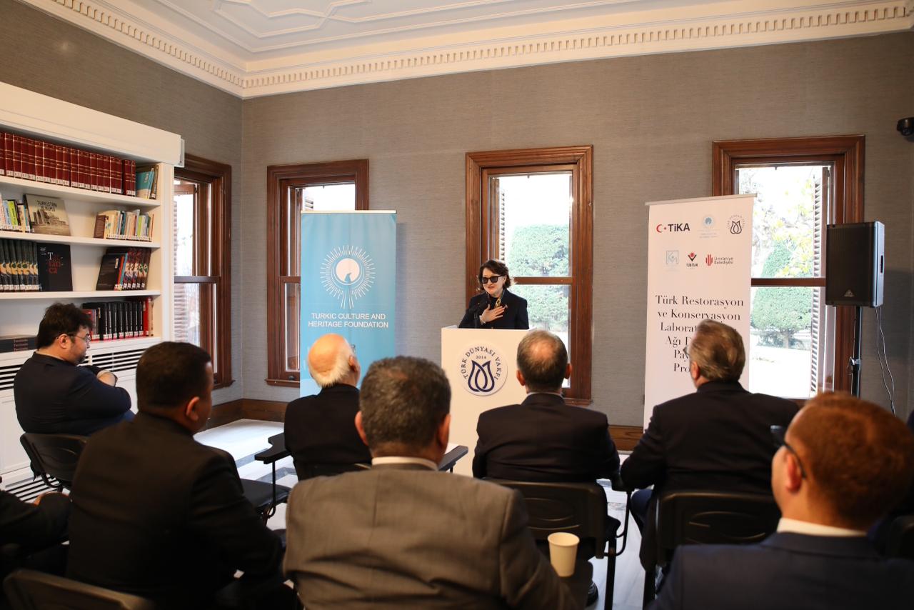 Bağlanış mərasimində çıxış edən Türk Mədəniyyəti və İrsi Fondunun prezidenti Aktotı Raimkulova proqramın Türk dünyasında mədəni irsin qorunması sahəsində peşəkar əməkdaşlığın gücləndirilməsi baxımından mühüm platforma olduğunu vurğulayıb. O bildirib ki, bərpa və konservasiya laboratoriyaları memarlıq abidələrinin, tarixi artefaktların və ümumi mədəni yaddaşın qorunmasında mühüm rol oynayır və bu kimi təşəbbüslər türk dünyasında davamlı əməkdaşlıq üçün dayanıqlı zəmin yaradır.