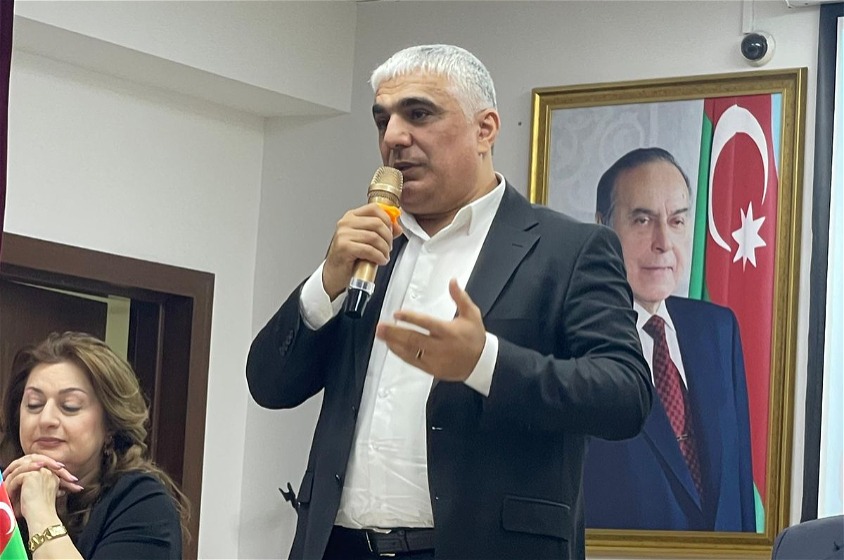 ADU-nun Azərbaycan dilçiliyi kafedrasının professoru Adil Babayev çıxışında Heydər Əliyevin dil siyasətindən danışmış, Azərbaycan dilinin dövlət dili kimi möhkəmləndirilməsi istiqamətində görülən işləri elmi aspektdən təhlil etmişdir. Tədbirdə çıxış edən Azərbaycanın görkəmli şairi Rüstəm Behrudi Türk dünyasının ortaq ruhu, milli kimlik və istiqlal ideyasının bədii-fəlsəfi mahiyyətinə toxunmuş, Ulu öndər Heydər Əliyevin bu ideyanın siyasi ifadəçisi kimi tarixdə xüsusi yer tutduğunu, Ümummilli Liderin Azərbaycan dilinin qorunmasında önəmli xidmətləri olduğunu vurğulamışdır.