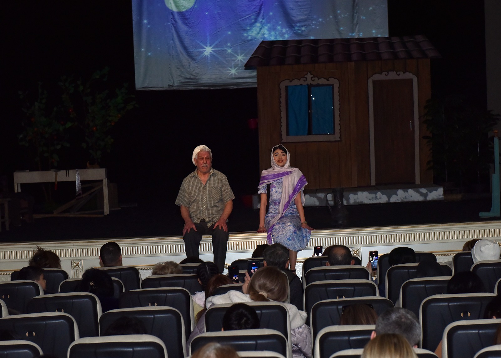 Səhnədə Əməkdar artistlər Fəranə Musayeva və İlahə Səfərova, eləcə də aktyorlar Oktay Mehdiyev, Akif Mirzəyev, Şəms Abdullayeva, Füzuli Qərənizadə, Elay Xasiyev və Aynur Hümmətova çıxış ediblər.