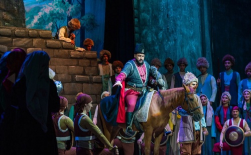 Ehsan paşa – Fəhmin Əhmədli, İbrahim xan – Nazim Mahmudov, Həmzə bəy – Əməkdar artist Fərid Əliyev, Alı – Xalq artisti Əkrəm Poladov, kəndli Nadir və Eyvaz rollarında isə Nəzər Bəylərov səhnədə olub. Digər rolları Əməkdar artist Əliəhməd İbrahimov (Təlxək və Carçı), Hidayət Əliyev (Polad), Xalq artisti Fidan Hacıyeva (Xanəndə qız), Əməkdar artist Tural Ağasıyev və Məmmədhəsən Şəmmədov (Əyanlar) canlandırıblar. Zəngin ifa tərkibi və yüksək səhnə mədəniyyəti ilə təqdim olunan tamaşa Üzeyir Hacıbəyli festivalının yaddaqalan anlarından olub.