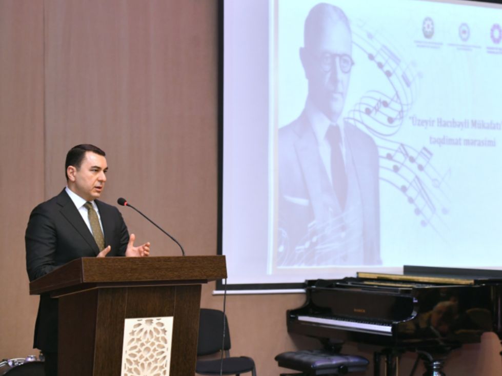 Tədbirdə çıxış edən mədəniyyət naziri Adil Kərimli bildirib ki, dahi bəstəkar Üzeyir Hacıbəylinin anadan olmasının 140 illiyi münasibətilə həm ölkə daxilində, həm də xarici ölkələrdə çoxsaylı layihələr həyata keçirilib.