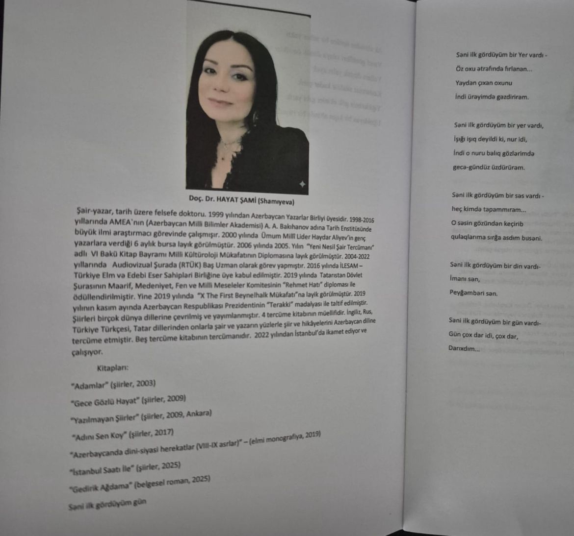 Tokat İl Milli Egitim Müdürlüyü (müdir: Hüseyin Kır) və Türkiyə Dil və Ədəbiyyat Dərnəyi (TDED) Tokat şöbəsinin (başkan: Ali Bal) iş birliyi ilə hazırlanan Şeir proqramına 15 yanvar saat 17:30-da, Tokat Yağıbasan mədrəsəsində start verildi. Proqram koordinatorları İbrahim Yıldırım, Ahmed Polad, Hatice Uçar Cansız, Melek Çelebi kimi isimlər bizimlə maraqlanır, qonaqpərvərliklərini əsirgəmirdilər. Proqrama təkcə Tokatdan deyil, Türk dünyasından bir çox ədib, şair və akademisyenlər: bəndəniz – Doç.Dr. Həyat Şami (Azərbaycan), Kadriyə Cəsur (Bolqarıstan), Mustafa Ziya (Kərkük), Nurala Göktürk (Doğu Türküstan), Türkiyənin ayrı-ayrı şəhərlərindən və Tokatdan isə Ahmet Karpinar, Ali Bal, Altan Serim, Kənan Çağan, Kumrugül Türkmən Akın, M.Sinan Kökçü, Mustafa Uçurum, Şenol Korkut, Yasemin Kuloğlu, Yunus Yılmaz qatıldı. Proqramda Türk dünyası ezgilərindən əsintilərlə Murat Ağıl və onu müşayiət edən musiqiçilər də səhnə aldı.