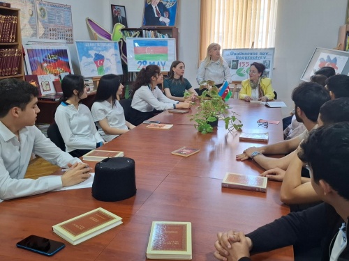 Məktəbin 8-ci və 10-cu sinif şağirdləri Əlisəfa Ziyadlı, İsmət Əliyev, Məhəmməd Nuriyev və b. Əbdürrəhimbəy Haqverdiyevin “Mirzə Səfər” hekayəsinə dair səhnəcik nümayiş etdilər.