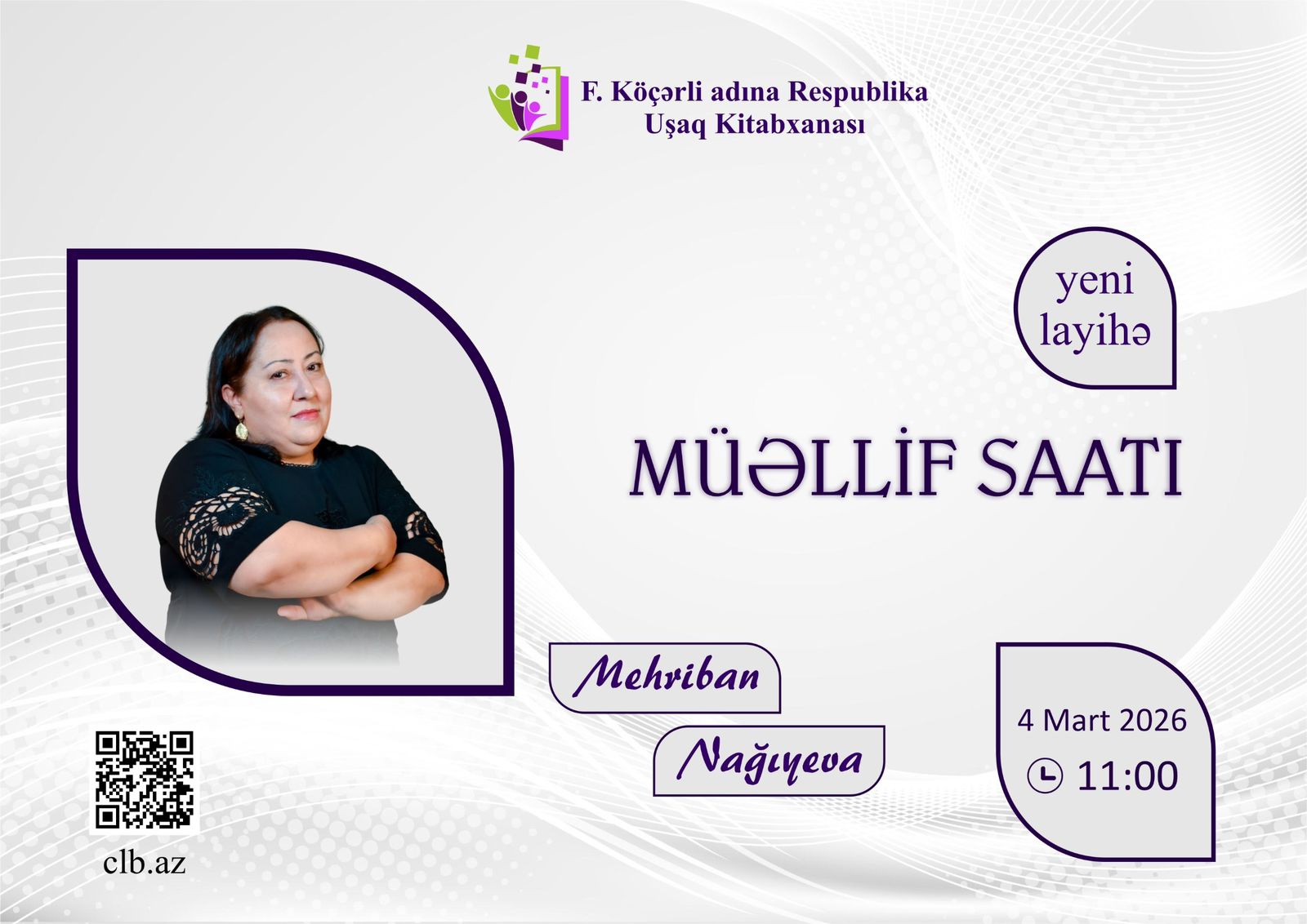 F.Köçərli adına Respublika Uşaq Kitabxansında “Müəllif saatı” adlı yeni layihəyə başlanılıb. Layihənin əsas məqsədi uşaqların ədəbiyyata marağını artırmaq, oxu mədəniyyətini zənginləşdirmək və onların yaradıcılıq qabiliyyətlərini inkişaf etdirməkdir.