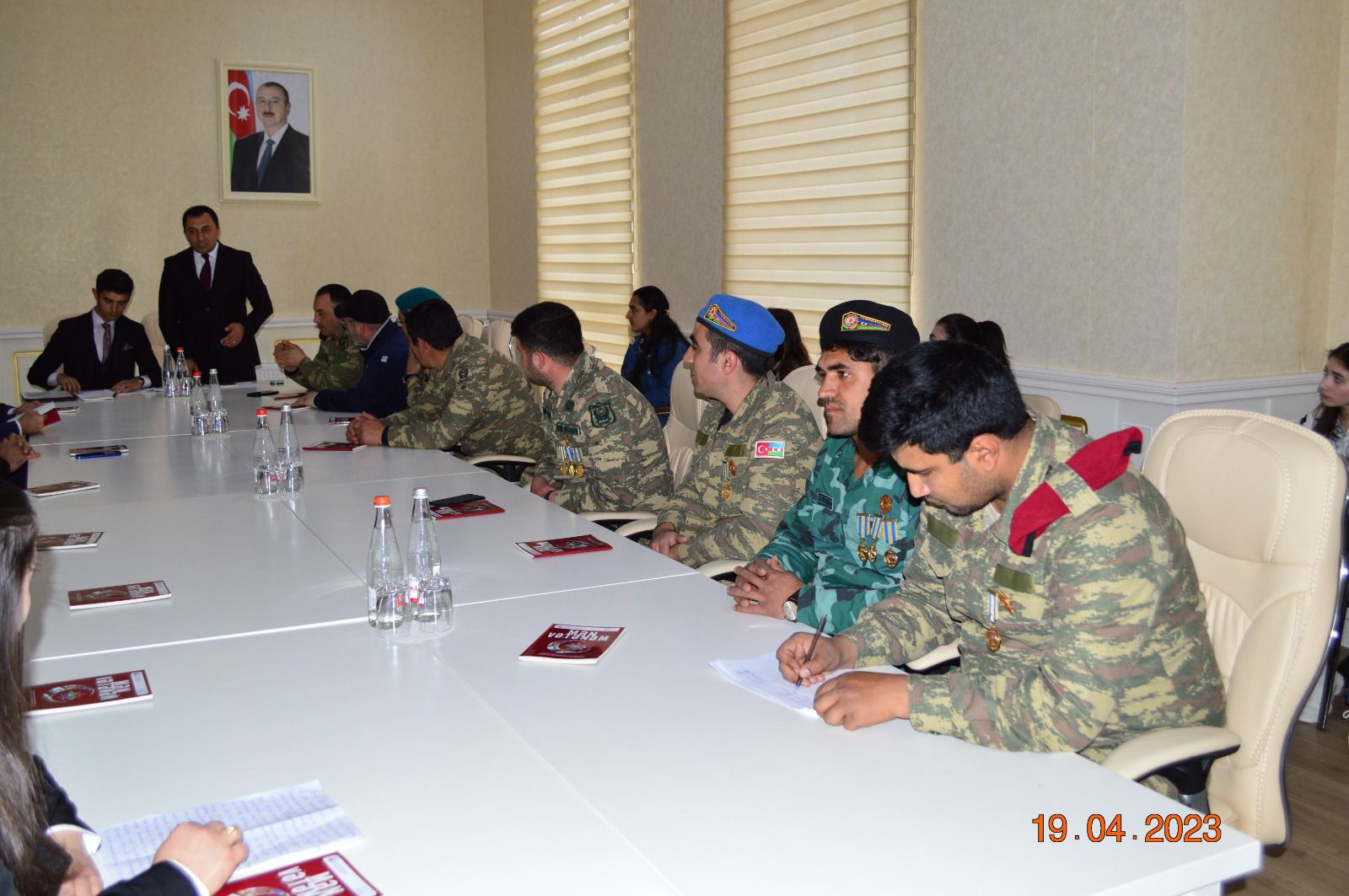 Tədbirə dəvət olunmuş Vətən müharibəsi iştirakçılarının cəbhə ilə bağlı təəsürüatları, gənclərə tövsiyələri dinlənilib. Yekunda müzakirələrdə aktiv iştirak edən iştirakçılar diplomlarla təltif edilib. Tədbirə xatirə şəkli çəkilməklə yekun vurulub.