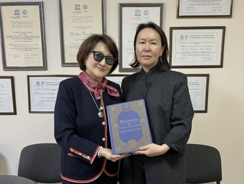 Qırğız Respublikasına rəsmi səfər çərçivəsində Türk Mədəniyyəti və İrsi Fondunun prezidenti xanım Aktotı Raimkulova ilə YUNESKO üzrə Qırğız Respublikası Milli Komissiyasının baş katibi xanım Sabira Soltongeldiyeva arasında görüş keçirilib.
